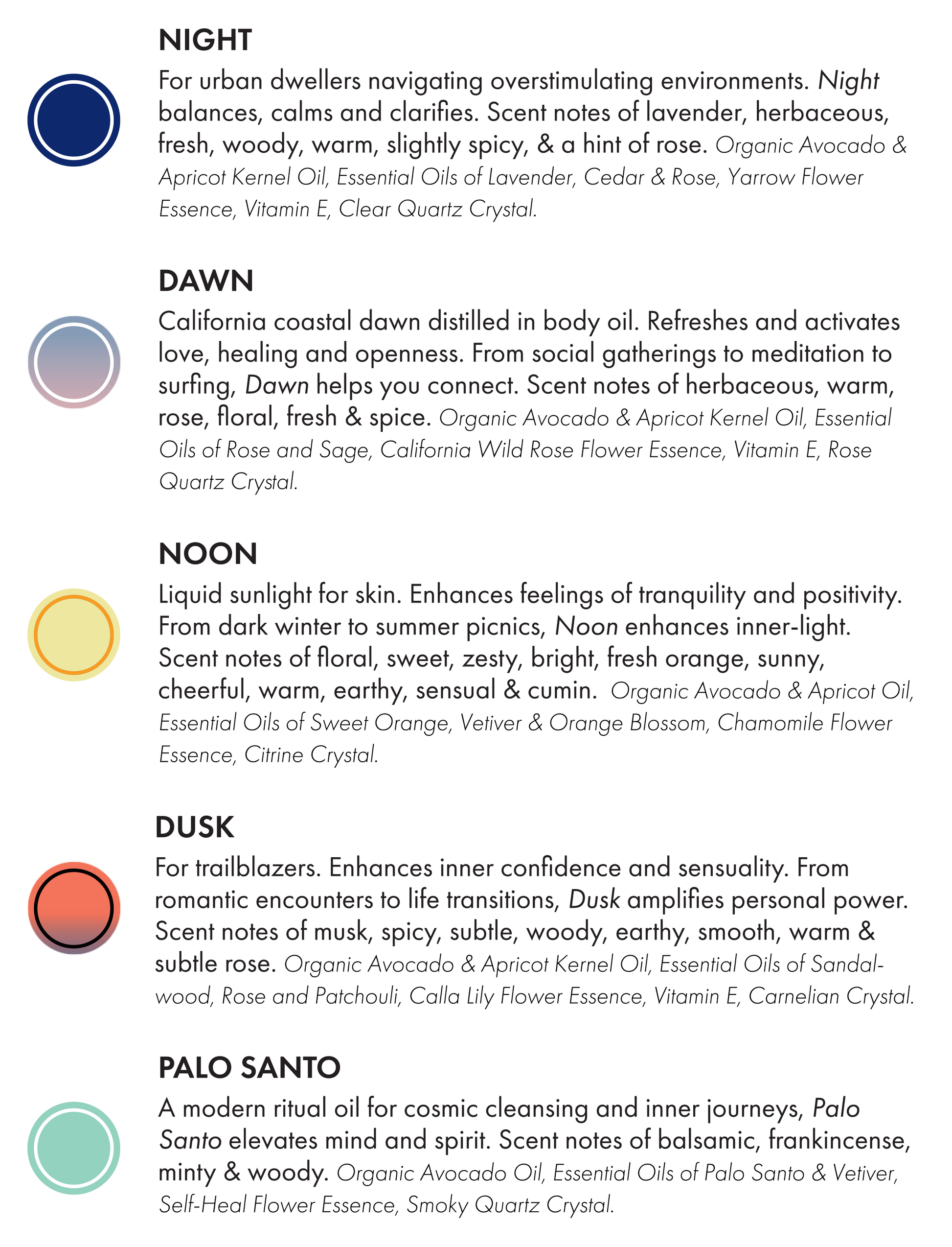 New to Monk Oil? Not sure which one is right for you? Our Monk Oil Sample Set offers a single use of each potion: Original, Dawn, Noon, Dusk, and Palo Santo.